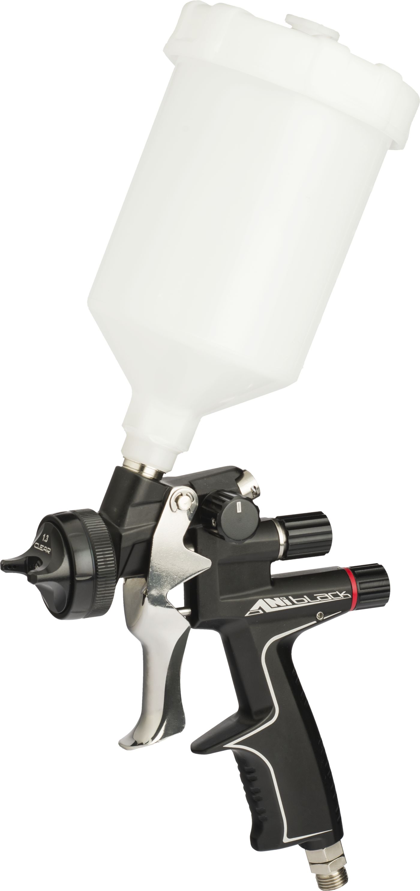 Ani Black/S yläsäiliömaaliruisku. Suunniteltu paras pinnan laatu mielessä niin ajoneuvojen korjausmaalauksessa kuin teollisessa maalauksessakin. Uusi suutinrakenne takaa erittäin tasaisen ja leveän maaliviuhkan. CLEAR suutin soveltuu 2K pintamaaleille ja kirkaslakoille, esim. Mipa OC akryylipintamaalille ja Mipa kirkaslakoille. 600 ml yläsäiliö.