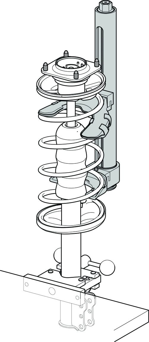 Vankkarakenteinen jousipuristin korjaamokäyttöön. Sopii Ø 80-195 mm kierrejousille.