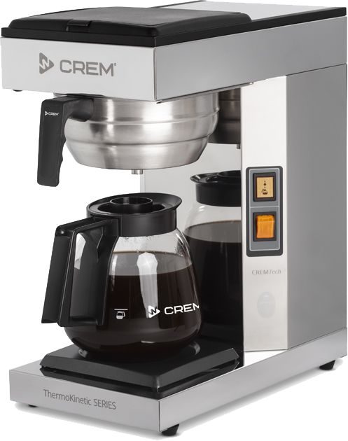 Crem M-1 ThermoKinetic manuaalinen vedentäyttö. Keittää 12 kupillista kerralla. 1 lämpölevy, 1 lasinen 1,8l kahvipannu, pakkauksessa myös mukana 25 kpl suodatinpusseja. Crem ThermoKinetic keittimet on suunniteltu vaativaan ammattikäyttöön. Crem keittimillä Euroopan kahvi-instituutin (ECBC) sertifikaatti. Mitat: Syvyys 360mm, korkeus 430mm, leveys 205mm. Suositeltava 110mm suodatinpaperi 110110 paketissa 1000kpl.