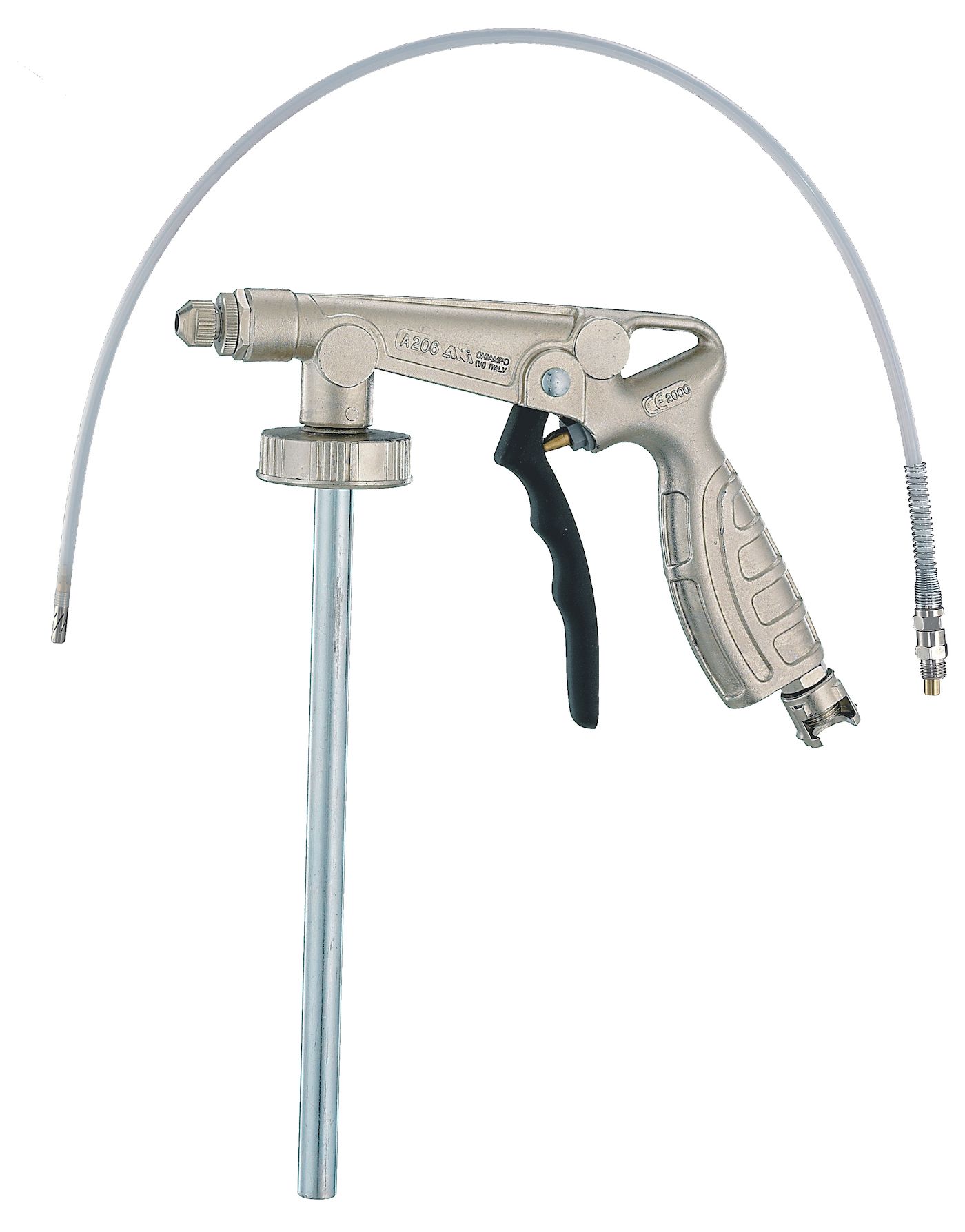 Massausruisku ammattikäyttöön. Metallirunko. Herkkä liipaisimen venttiili, määrää helposti säädettävissä. 90 cm pitkällä koteloaineletkulla. 1 litran imutölkeille. Säädettavä 5 mm suutin helpottaa oikean massan kuvion aikaansaamisessa. Sopii esim. Tectylin 1 litran imutölkkeihin.