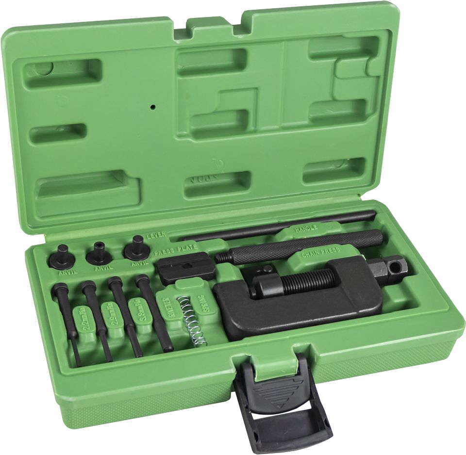 Ketjutyökalusarja moottoripyörän ketjuille. Soveltuu 2,2mm, 2,9mm, 3,8mm tapeille.