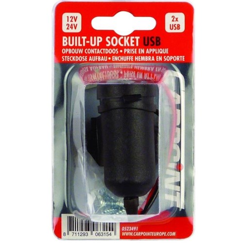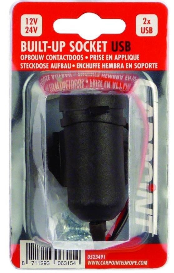 Carpoint pistorasia pinta-asennus 12/24V 2x USB-A (2,1A)