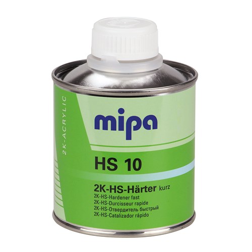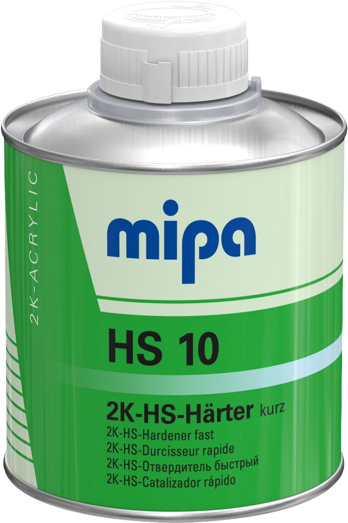 Mipa HS10 2K-kovettaja. Käytetään Mipa HS kovettajien kanssa suositelluissa 2K OC ja PUR-HS pintamaaleissa, lakoissa ja hiontamaaleissa maalien suosituksien mukaisesti. Mipa HS10 on nopea HS kovettaja.