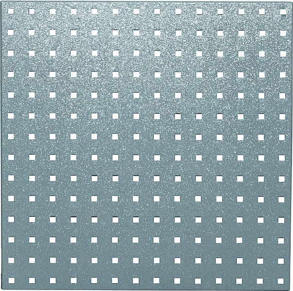 Reikälevy työkaluille. GWS reikäjako ( 10x10mm / reikäväli 38mm ). Soveltuu seinälle yms. kiinnitettäväksi. Mitat: 532x532mm. RAL7035