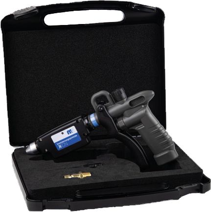 Kätevä paineilmakäyttöinen ilmapistooli sähköstaattisen varauksen neutralointiin.