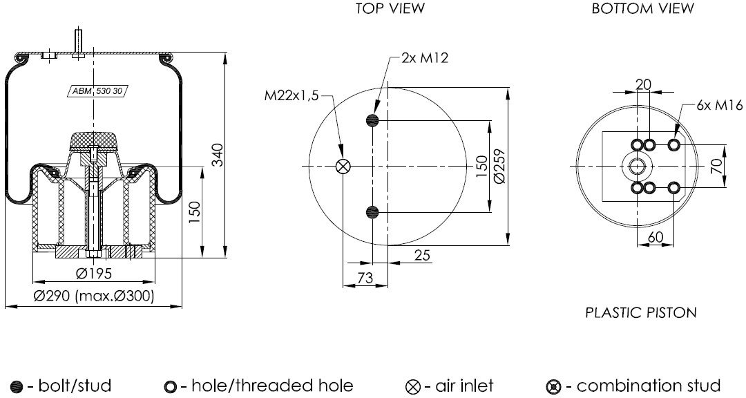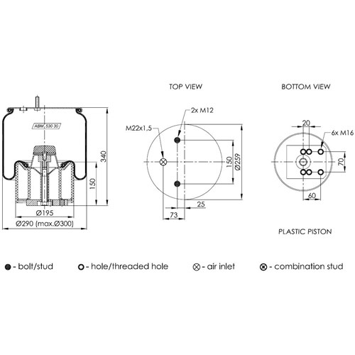 Neotec ilmajousipalje BPW 30K / 940MB muovimäntä 25mm offset