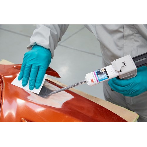 Joustavien osien 3M™-korjausmateriaalilla voi korjata suurimman osan vahingoittuneista ajoneuvojen muoveista. Korjausmateriaalimme on nopeasti kuivuva, joustava ja helppo hiottava. Se on helppokäyttöinen, ei riipu ja sopii erinomaisesti viistotukseen. Sitä voidaan käyttää muovin etu- ja takaosien korjauksiin tai yhdessä muovikorjauspaikan kanssa. Joustavien osien korjausmateriaalimme on saatavilla erillisissä tuubeissa käsisekoitusta varten tai kaksoispakkauspatruunana helppoa automaattista sekoitusta varten käytön aikana. Joustavien osien korjausmateriaalimme sopii käytettäväksi 3M:n manuaalisen pistoolin 08190 ja 3M-suutinten 08198 sekä polyolefiinikiinnityksenedistäjän kanssa.
