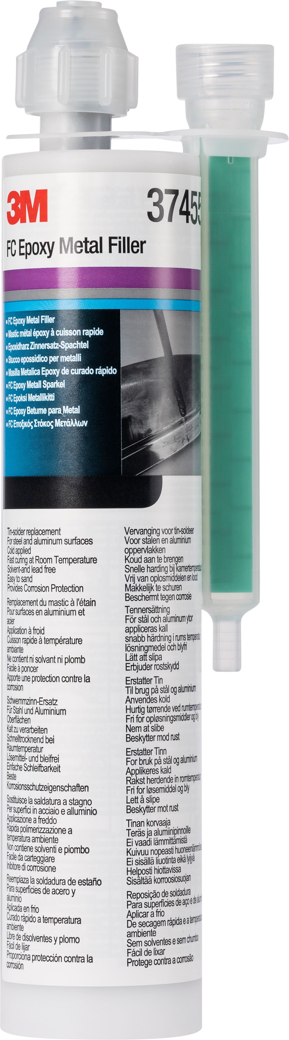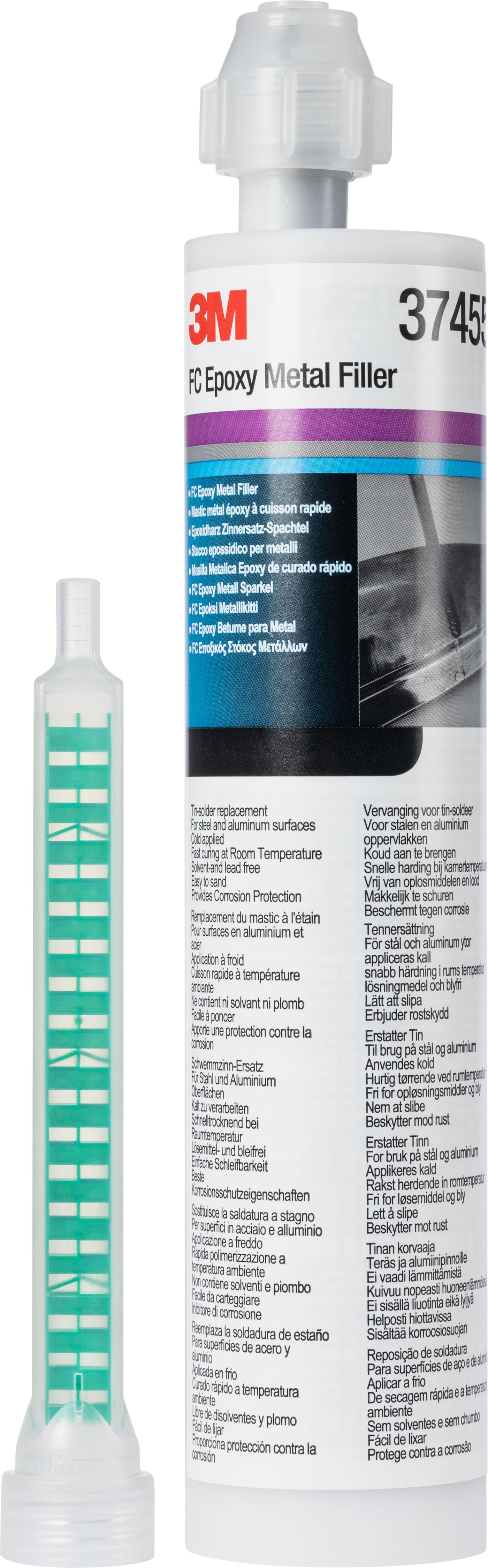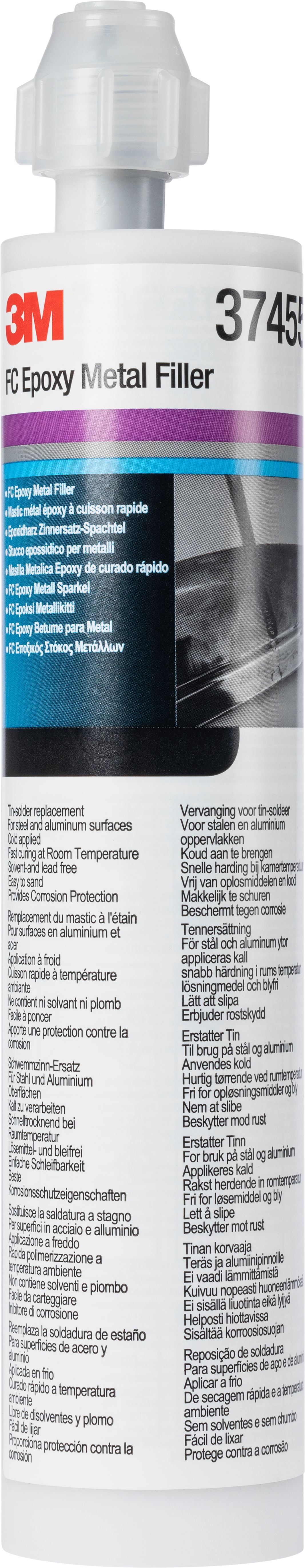 Tämä nopeasti kuivuva epoksimetallitäyteaine soveltuu auton metallisten korinosien korjauksiin, kuten kolhujen täyttämiseen, pinnanmuotojen oikaisemiseen ja hitsaussaumojen korroosiosuojaukseen. 3M™ FC -epoksimetallikitti on lyijytön ja koostuu sataprosenttisesti kiinteistä aineista, joten se ei kutistu kuivuessaan. Tuote tarttuu erinomaisesti ja suojaa tehokkaasti korroosiolta. 3M™ FC -epoksimetallikitin käyttöaika on noin 15–20 minuuttia ja kuivumisaika noin 2 tuntia 22 °C:n lämpötilassa, joten se mahdollistaa nopean työskentelyn korikorjaamolla. Kuivumista voidaan myös nopeuttaa infrapunakuivauksella. Kaikki edelleen käytössä olevat tinajuotosmenetelmät voidaan helposti korvata 3M™ FC -epoksimetallikitillä, jolloin prosessissa ei tarvita korkeita lämpötiloja, mikä on tärkeää nykyaikaisten autojen suurlujuusteräs- ja komposiittimateriaalien kanssa työskenneltäessä. Koska avoliekkejä ei enää tarvita, autojen kuumuudelle herkkiä osia ei tarvitse poistaa ja tuotteet voidaan kuivattaa huonelämpötilassa. Kun materiaali on kuivunut, se voidaan helposti hioa ja maalata tavalliseen tapaan – noudata maalivalmistajan ohjeita.