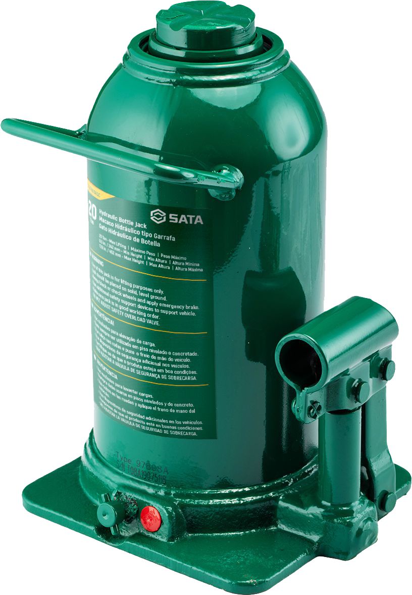 Satan laadukas CE-hyväksytty hydraulinen pullonostin, testattu 50% suuremmalla kuormalla turvallisuuden varmistamiseksi. 2-osainen pumppauskahva helpottaa varastointia, mutta antaa voimaa pumppaukseen. Nostimista saatavissa koot 2 - 50 tonnin maksimikuorman välillä. Kaikilla Sata-tuotteilla on ikuinen takuu valmistus- ja materiaalivirheiden varalta.