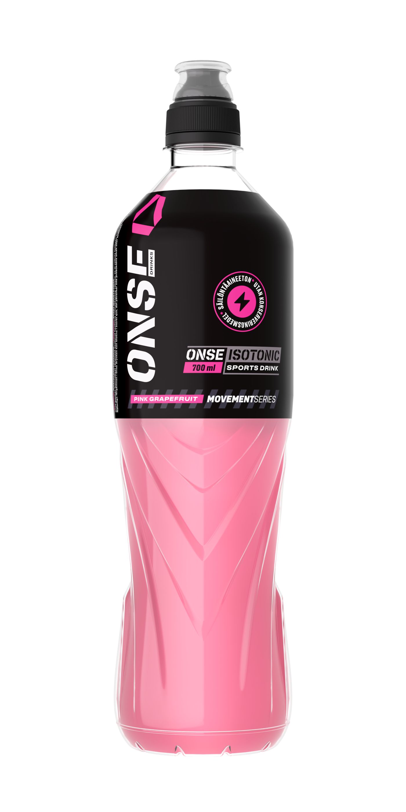 Onse Pink GrapeFruit vahvaa suorituskykyä ja hallittua palautumista. Greipinmakuinen isotoninen urheilujuoma. RAVINTOARVO per 100 ml, Energiaa 106 kj/25 kcal, Rasvaa 0g josta tyydyttyneitä 0g, Hiilihydraatit 6,0g joista sokereita 4,0g, Proteiinia 0g, Suolaa 0,14g ,Niasiini (B3) 1,2 mg (7,5%)*, B6-vitamiini 0,105 mg (7,5%)*, Biotiini (B7) 3,75 ug (7,5%)*. AINESOSAT, Vesi, dekstroosi, maltodekstriini, happo: sitruunahappo; trinatriumsitraatti; säilöntäaineet: kaliumsorbaatti, natriumbentsoaatti; musta porkkanatiiviste, makeutusaineet: aspartaami, acesulfaami K; happamuuden säätöaine: trikaliumsitraatit; stabilointiaineet: arabikumi, puuhartsien glyseroliesterit; väri: ammoniumsulfiittimenetelmän sokerikulööri; aromiaine, vahvistusaineet: vitamiinit: niasiini, B6-vitamiini, biotiini.