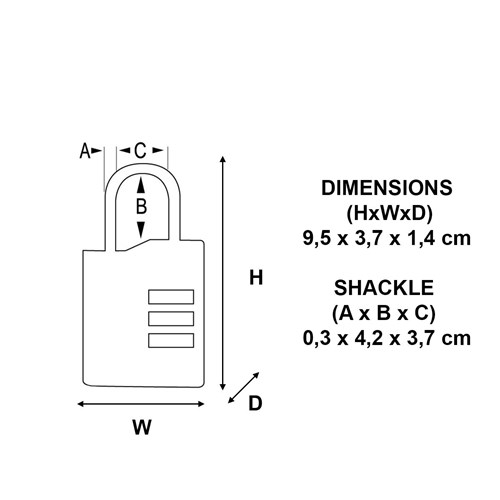 37 mm ABS-muovirunkoinen riippulukko. Joustava pitkä punottu terässanka. Numerolukituksella, määritä oma koodi, etkä tarvitse avaimia. Turvaluokitus 4/10. Ikuinen takuu.