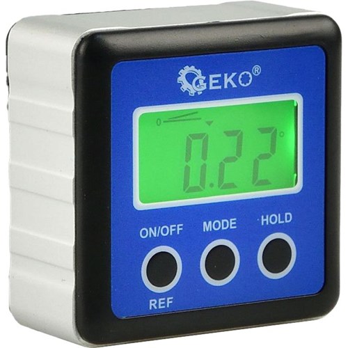 Digitaalinen astemitta magneeteilla kulman nopeaan ja tarkkaan mittaamiseen. HOLD-toiminnon avulla hetkellinen mittaus voidaan pitää näytöllä. REF-toiminto nollaa laitteen mihin tahansa asentoon ja tekee sitten vertailumittauksen. Sammuu automaattisesti 3 minuutin kuluttua. Mittaus tarkkuus: 0.1°. 4 mittausyksiköä: astetta, kaltevuus %, mm/m, in/ft.