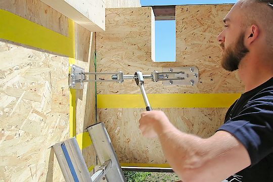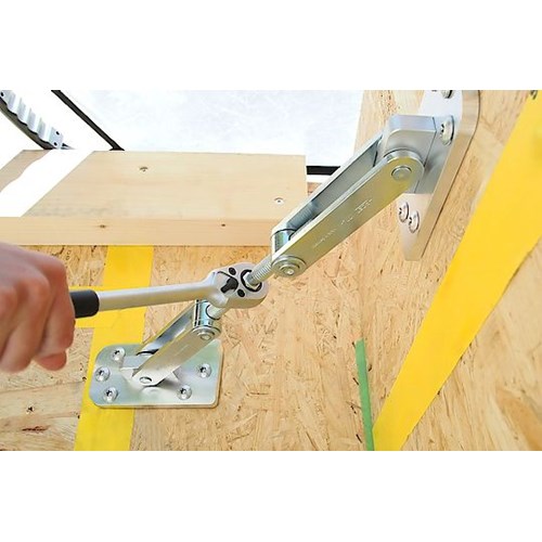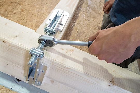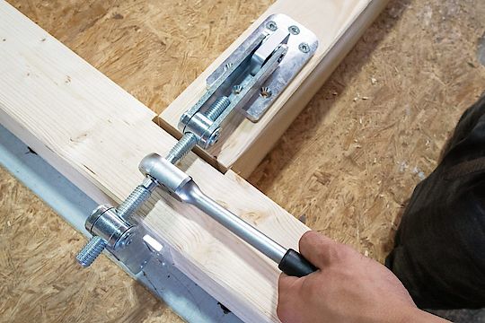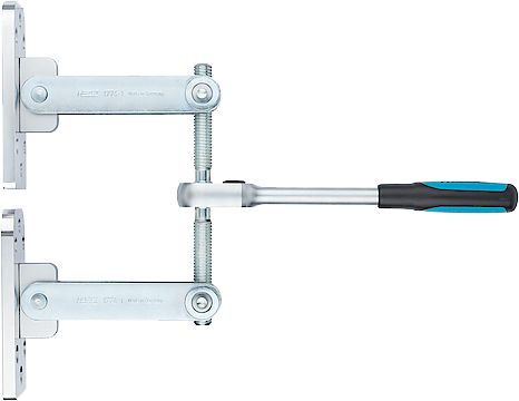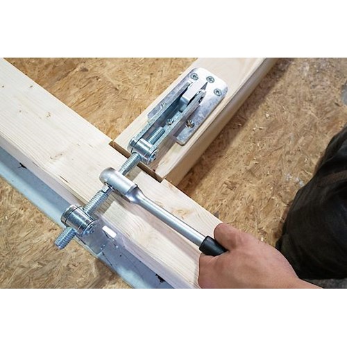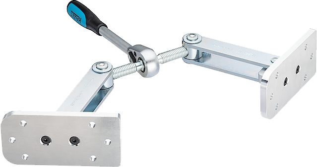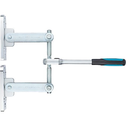 Soveltuu helposti repeäville ja halkeaville puulajeille. Puiden kiinnitys, veto ja yhteenpuristus. Soveltuu vaikeapääsyisiin kohteisiin (esim. kulmikkaat alueet, kaltevat katot jne.). Helppo ja ergonominen käsittely räikkävääntimellä. Erittäin herkkäliikkeinen trapetsikierre TR 16 x 0.5mm. Kiristysliike: 115 mm. Kokonaisleveys: 581 mm. Alumiinilevyn koko: 150 x 75 mm . Valmistettu Saksassa.