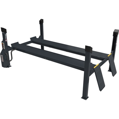Sähköhydraulinen 4-pilarinostin nopealla nostoyksiköllä ja kuormasta riippuvaisella laskutoiminnolla.