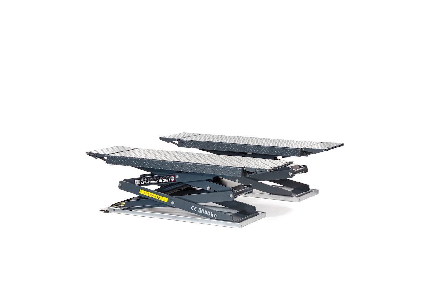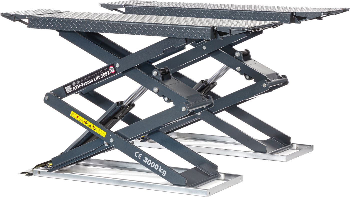 Korkealaatuinen ja vankka, lähes huoltovapaa hydraulinen tuplasaksinostin. Tehokas hydrauliyksikkö kuormasta riippuvaisella laskuventtiilillä. Erittäin matala n. 116 mm:n yliajokorkeus. Pinta-asennukseen. Tasaus kahdella isäntä-orjajärjestelmällä, valokennoilla ja kahdella hydraulilinjalla. Täysi nostoteho jo matalimmassa asennossa. Hätälaskujärjestelmä sähkökatkon varalta, hätä-seis-painike ja laskemisen äänimerkki. Ihanteellinen maalaamoille ja korikorjaamoille, korjauksiin sekä jarru- ja rengastöihin. Pinta-asennus.
