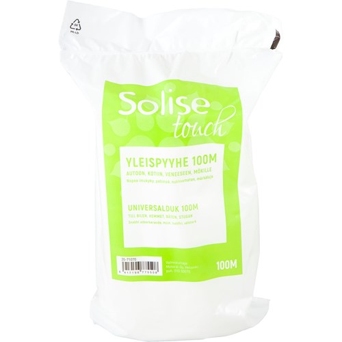 Märkäluja ja nukkaamaton valkoinen 1-kertainen yleispyyhe autoon ja kotiin. Leveys 20 cm, pituus 100 m. 1rll/pss. 12 rll/ltk. 60 ltk/lava.