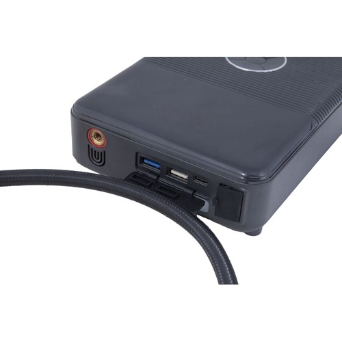 Kaksi USB-A ja USB-C portti virtapankkikäyttöön muille laitteille. Ajoneuvojen käynnistys Smart-liitäntäkaapeleilla, joissa ylijännite, purkaus, vääränapaisuus ja virran takaisinsyöttö suojaus.