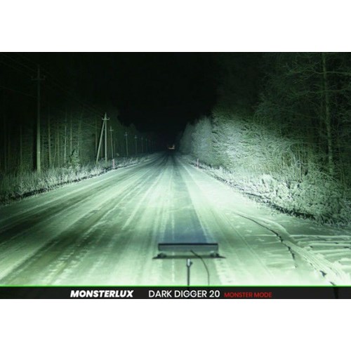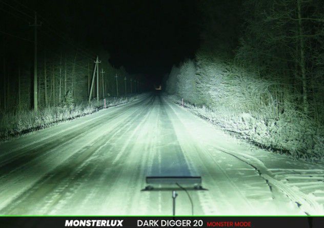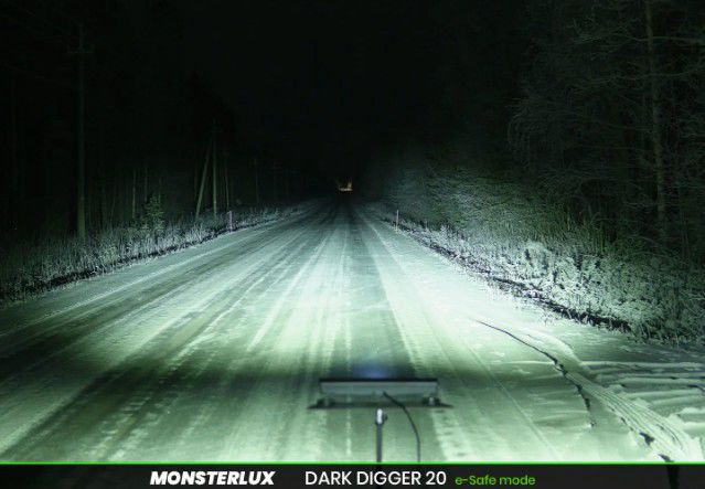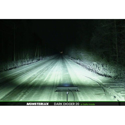 Monsterlux Dark Digger 20 (DD20) on uuden sukupolven LED-lisävalopaneeli, jossa Vision Select -optiikka tarjoaa kaksi selkeästi erilaista valotilaa: tieliikenteeseen suunnatun e-Safe-tilan sekä maastokäyttöön tarkoitetun Monster Mode™ -täystehotilan. Sileäpintainen, likaa hylkivä runko ja viimeistelty valomuoto tekevät DD20:stä sekä käytännöllisen, että näyttävän valinnan pohjoisiin olosuhteisiin.