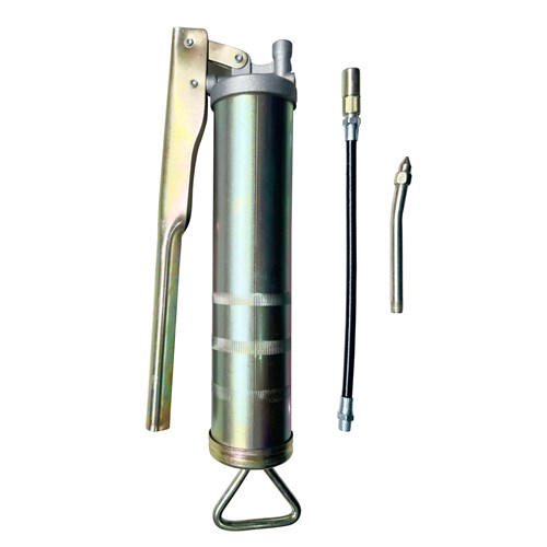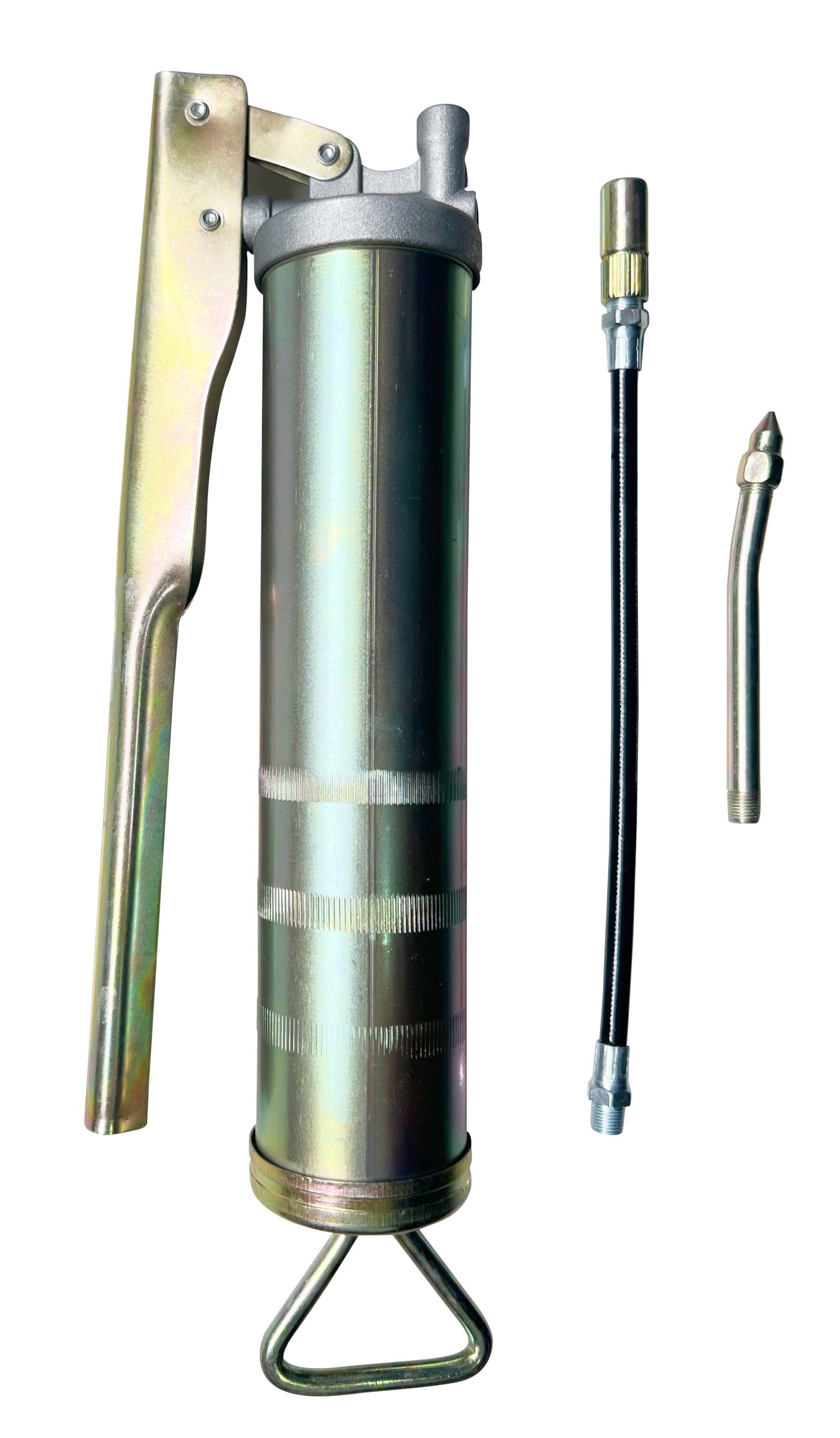 Laadukas M+ rasvapuristin 400gr vakiopatruunalle, koko 53x240mm. Mukana taipuisa liitosletku pikaliittimellä.