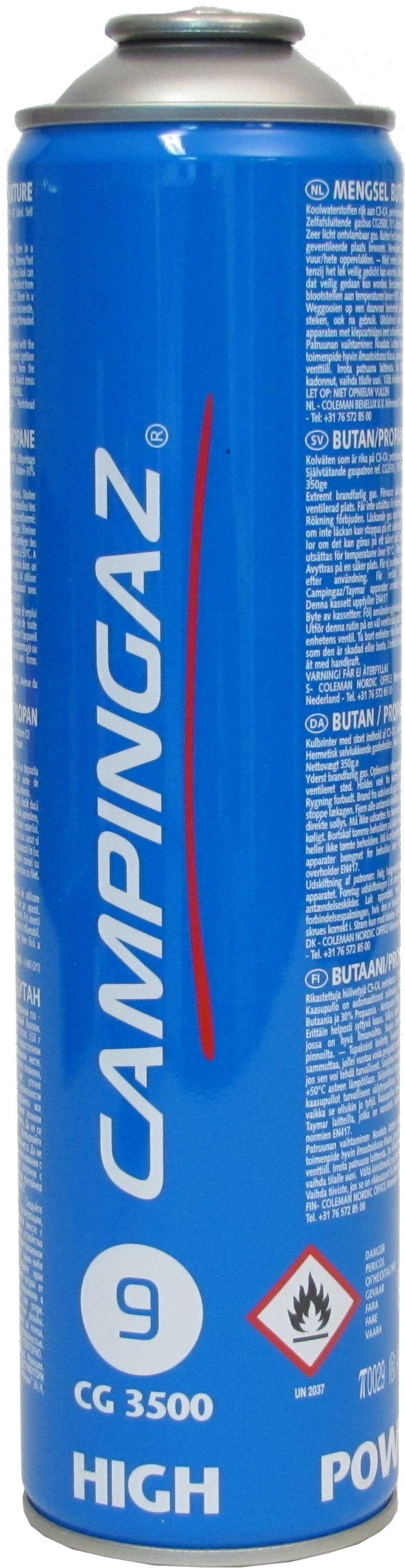 Sisältää butaani/propaani- kaasuseosta 350 g. Kaasurasia kierreventtiilillä. Korkea suoritustaso. Soveltuu esim. monitoimipolttimille.