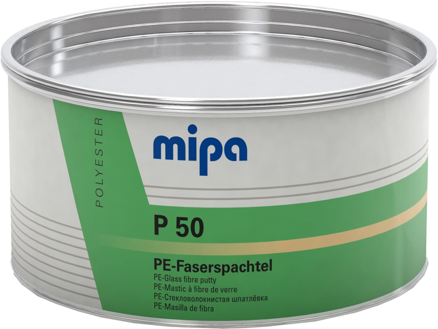 Mipa P50 on kaksikomponenttinen lasikuitutäytteinen polyesterikitti. Käytetään syvien epätasaisuuksien ja kolojen täyttämiseen rauta-, teräs-, alumiini- ja lasikuitupinnoilla., soveltuu ruostuneiden metallipintojen korjaamiseen. Värisävy maitomaisen keltainen.
