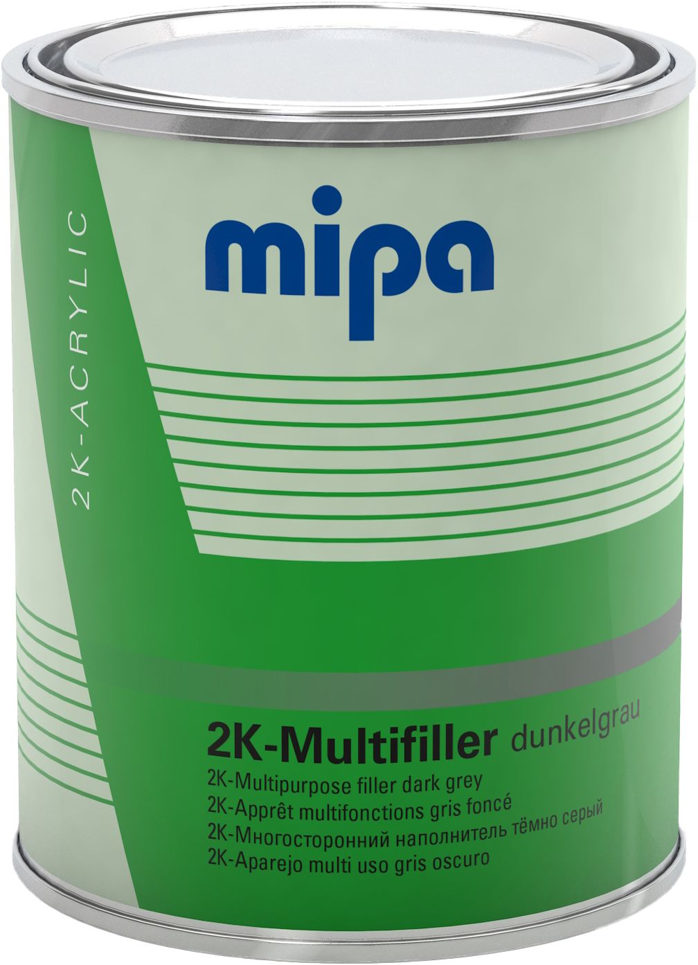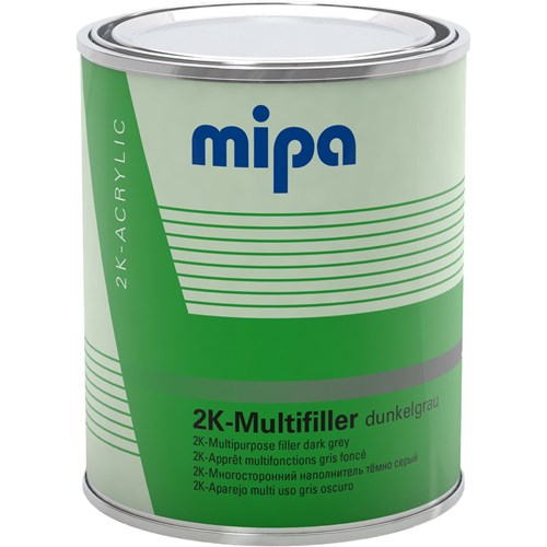 2K yleiskäyttöinen filleri. Toimii niin hionta- kuin märkää-märälle menetelmillä. Metallipintojen lisäksi tartunta yleisimpiin autoteollisuuden muovilaatuihin. 6:1 sekoitussuhde Mipa HS kovettajilla.